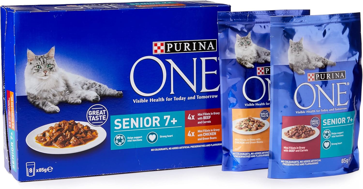 Purina One Senior 7 Adult Wet Cat Food Mini Fillets In Gravy With Chicken And Green Beans 5 X 8 X 85g Amazon Co Uk Pet Supplies